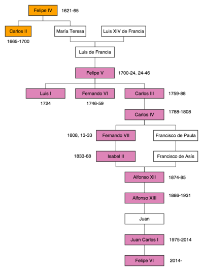 Monarquía borbónica: Felipe V, Fernando VI, Carlos III y Carlos IV